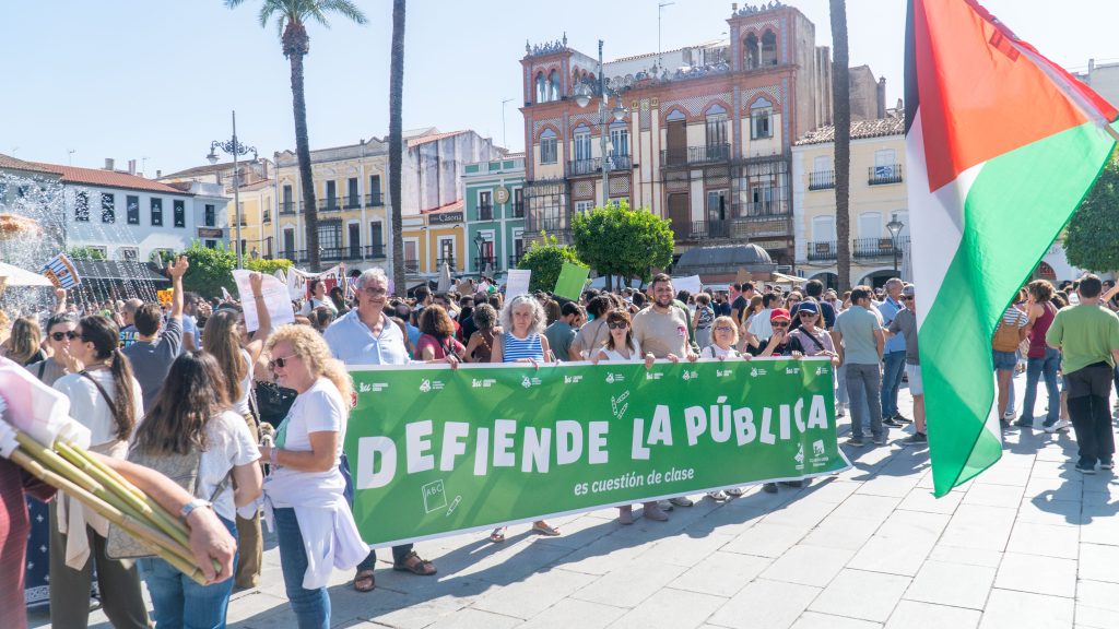La manifestación partió desde la rotonda del Puente Lusitania, transitó por la calle Almendralejo, Camilo José Cela y Félix Valverde Lillo, para concluir en la Plaza de España. Desde todos los puntos de Extremadura llegaron delegaciones en coche y autobus repletas de maestros, maestras, profesores y profesoras. En cada cruce se multiplicaban los cánticos y las consignas de protesta coreadas al unísono. Familias, estudiantes, vecinos y vecinas se apostaban en las aceras y los balcones, para acompañar con aplausos a la columna de miles de docentes